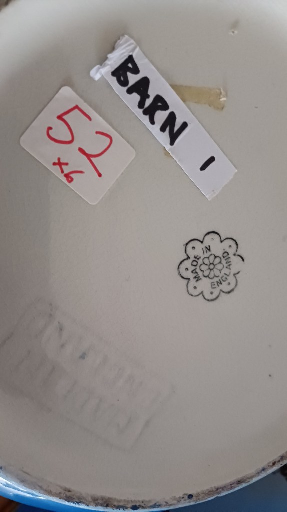 But you didn’t need the internet to work out how long ago the jug had been broken. To the back was a recent auction sticker 52 x 6. 52 being the lot number and six the number of items to the lot and Eloise bought five pieces, the sixth obviously being the jug which had obviously just broken! I digress.