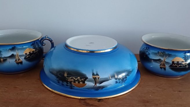 Eloise bought five pieces of beautiful china from a late Victorian wash bowl sets today 2/5. Missing the large jug (ewer) she broke them up and listed them individually.
