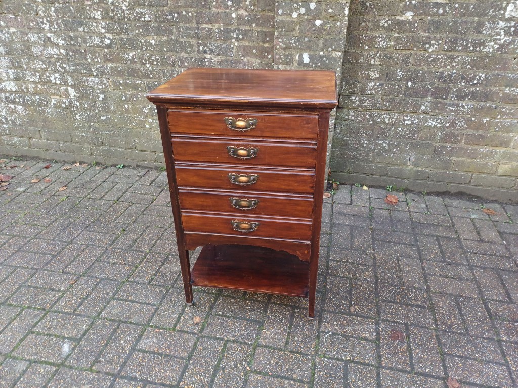Before radio, before streaming, before a bloody device could produce an orchestra at the touch of a button, the piano was the beating heart of the home. Families gathered around it. Children learned on it. Guests sang at it. With the piano came piles upon piles of sheet music, scores, hymns, popular songs, salon pieces, sonatas, the latest music hall tunes. A dedicated cabinet made perfect sense. Drawers were sized to fit folios; brass supports allowed the drawer fronts to drop down; each sheet could be stored flat to stop it creasing or warping. It was the height of genteel domestic organisation.
